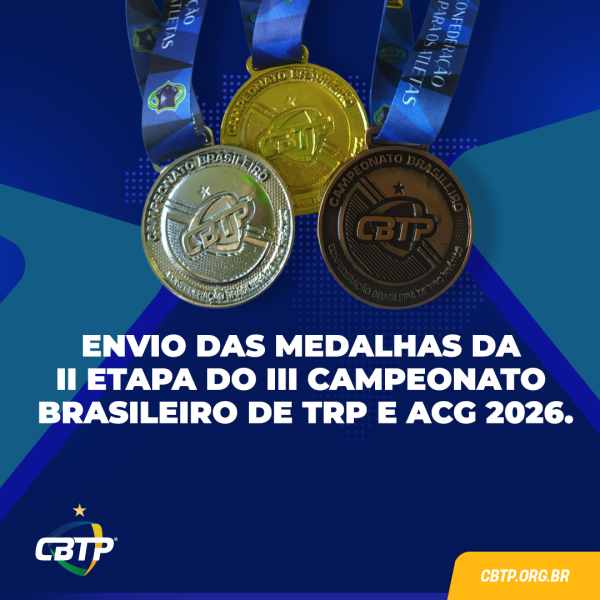 A CBTP encaminhará no ano de 2026, trimestralmente, para as sedes dos clubes participantes, as medalhas da II Etapa do III Campeonato Brasileiro de TRP e Action Caliber Gun, ocorrido dos dias 02 a 08 de março de 2026.